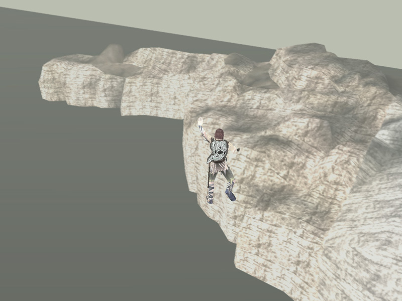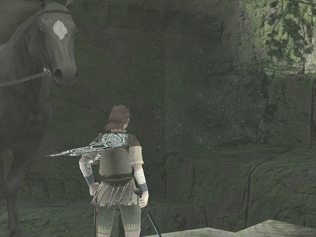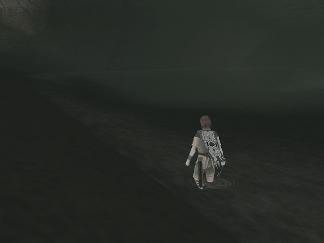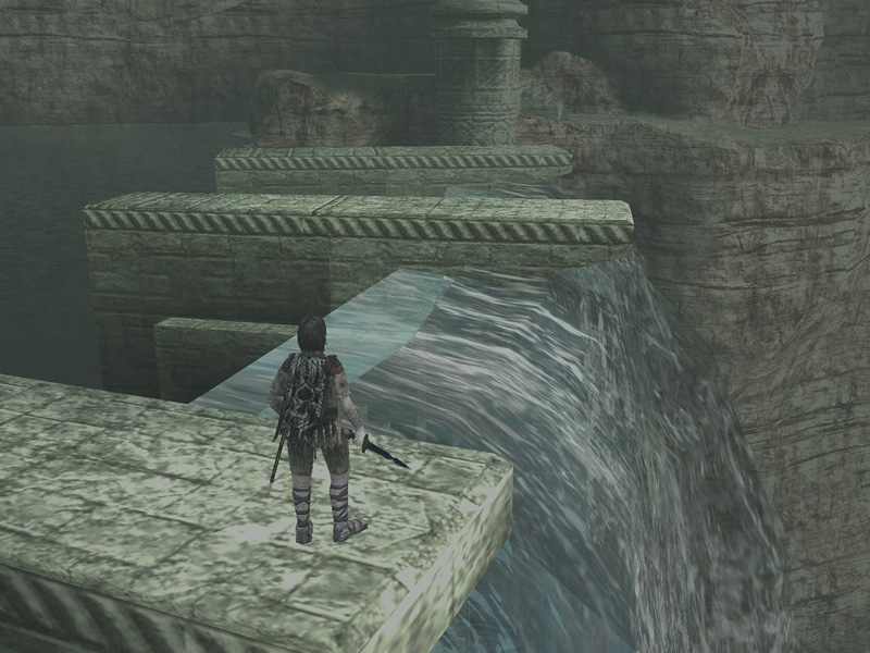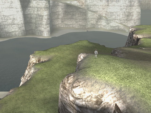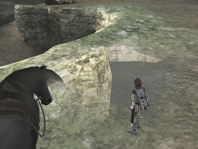 Wander runs over to the edge of the pit and looks down, but there is nothing there (of course). In later videos I can shift the camera to the colossus, so as it falls we would see what it is seeing as it falls into the void. But the result is the same... the colossus just falls into the void and keeps falling forever!