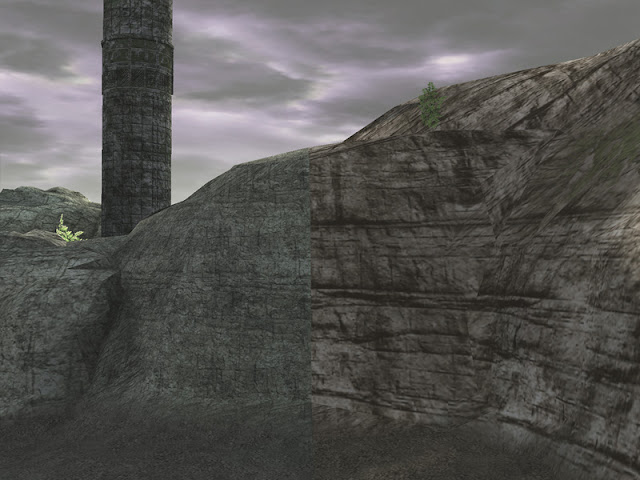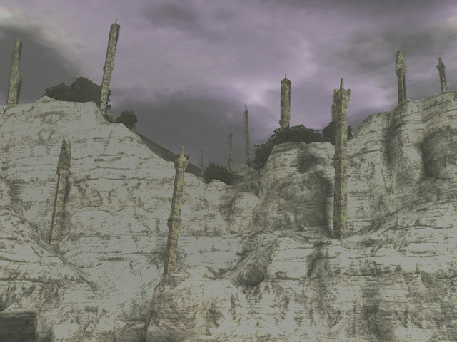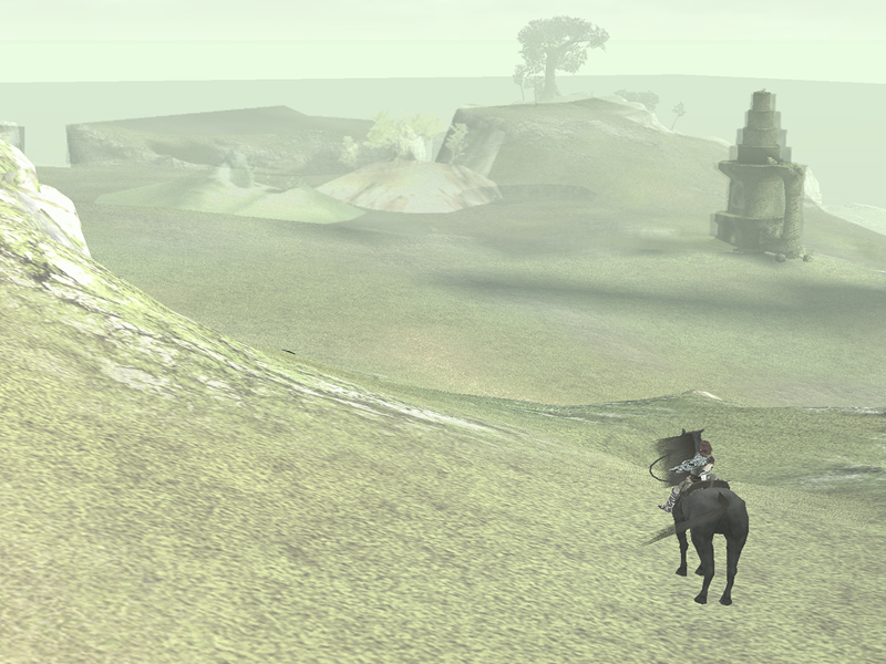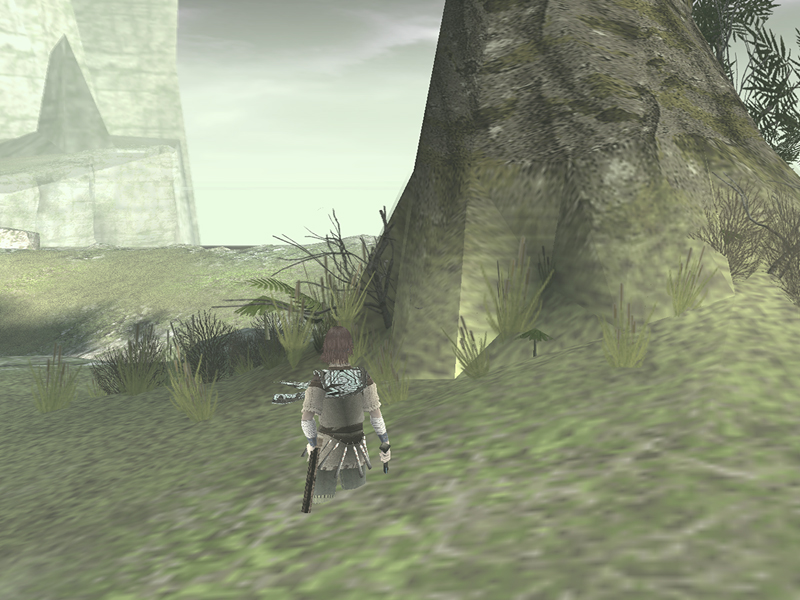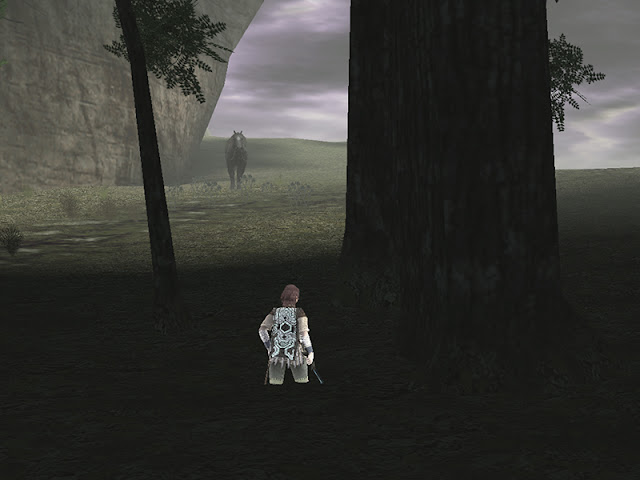 For the first minute of this two minute video it's just Valus standing still and breathing with the hawks (or kites) circling and shrieking above. Apart from the camera wobble it's quite relaxing to watch I think... Just the sounds of the wind, the flapping of the bird's wings and the sonorous sound of the colossus breathing. I neglected to make the eyes and sigils glow this time so Valus has those creepy dead eyes devoid of life! About a minute in, I start to make the colossus walk but the camera stays fixed and we watch it stomp away into the distance. Then all of a sudden one of the trees falls over by itself? What just happened you may ask? The answer is, once Valus was far enough away I shifted the camera to one of the trees, you can see at 1:55 in the video Wander's grip and health bar appear briefly, this is when I changed the camera to the tree. I then used my controller to knock it over, but since I had the camera locked where we started it appears to fall over by itself.