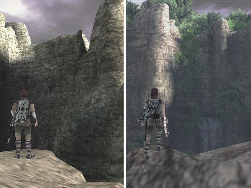 Merry Christmas! Here is an area that Wander can climb down to reach a rocky ledge and a nice view of the ocean but little else. There is a similar ledge at H7 on the world map, both let you climb down some ledges but they lead nowhere? The first part of the video showcases the US retail version. You can see a carpet of lime green grass that Wander can climb down, it stands out boldly from the surroundings. When Wander reaches the ledge he explores what there is to see and then at 01:22 suddenly jumps to his death! Not sure why I did this? Then Wander climbs back up the mossy carpet back to Agro.