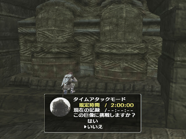 Here, my main objective was to freeze the knight (Gaius) before it wakes up, which is what we see in this video. I start on the broken ramp then bypass the gap via using the gravity and parachute hacks. I land on the central disc and the cutscene starts... but Gaius does not move. Once the cutscene is over I run around to look into the eyes of the colossus. Technically it is awake now, just frozen and unable to move. It must be thinking 'How dare this intruder use his magic on me'!!! Then Wander just stands still for 19 seconds! What was I doing during this long pause you may ask? Well, I was searching through my Tsearch memory editor looking for the code that 'unfreezes' Gaius LOL! Finally, the colossus starts to move and stands up. Once standing, it turns around and performs its vertical attack. Wander gets knocked backwards but is unharmed - video ends.