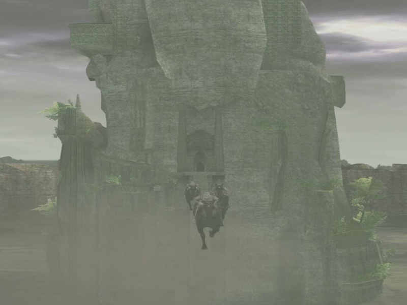 Wander falls back into the pool from the top of the ramp, looking like a wind up doll until at the last second he unfurls the parachute. He then runs out of the temple and towards the first colossus arena, every now and then the game stops as it has to catch up with Wander's speed. He reaches the first colossus arena high on speed! Wander is tripping balls now! He moves like he has snorted a pound of cocaine! Video ends.