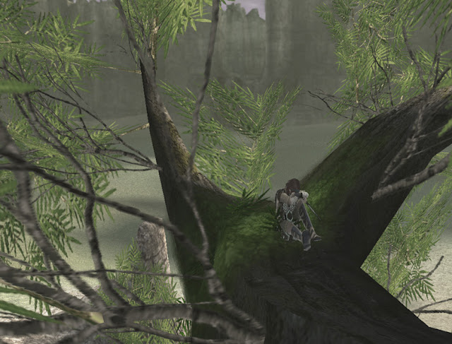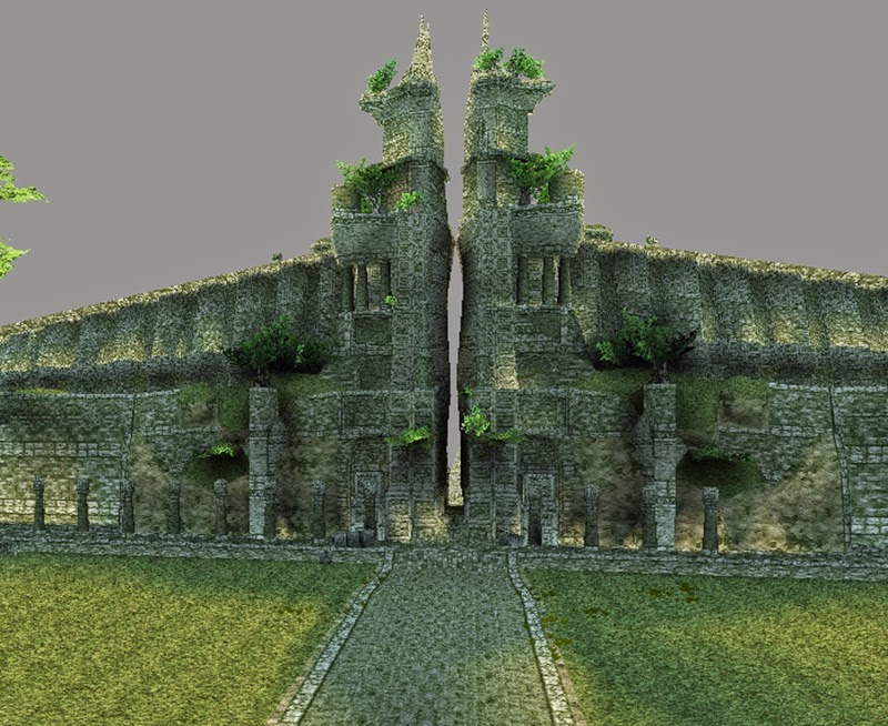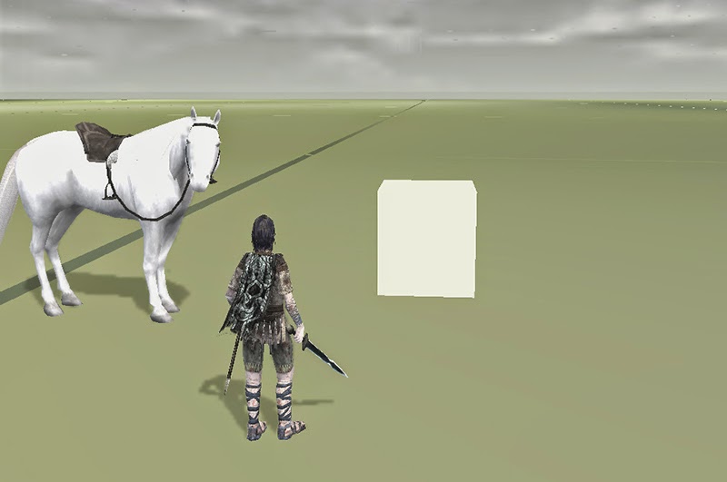 The intro cut scene consists of five different parts 1) the canyon 2) the forest 3) rest stop in the rain (this is where you see Emon and his soldiers arrive later in the game), 4) a long green field and 5) behind the entrance gates with the main bridge leading to the temple. Each area is a different model that loads separately, so each model has to be explored independently. The same freeze code works throughout, but at the green field the screen turned black so we couldn't explore that area at first. I talk further about the intro cut scene in a separate post here: http://nomads-sotc-blog.blogspot.com/2011/07/intro-cut-scene-green-field.html but this is how I became deeply involved in hacking the game, to see what other areas I could find that you can't see normally.