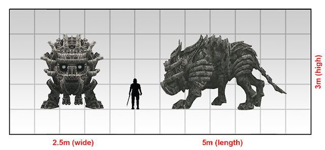 Below is another example to show how I worked out the colossi sizes, Quadratus is a good example as it's a very large quadrupedal colossus.