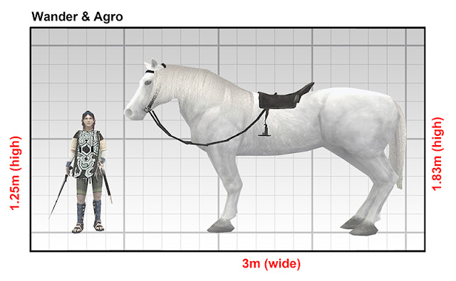 Players had always noticed how big Agro was compared to Wander, that is it seemed to be an enormous horse in comparison to the diminutive Wander character. Here we can finally see why; it's not Agro that is enlarged but rather Wander is very small in comparison to the horse. Granted, Agro is a large war horse, bred for battle and carnage perhaps? But it is Wander who creates the impression that the horse is too big to be normal, Agro appears to be a normal sized horse.